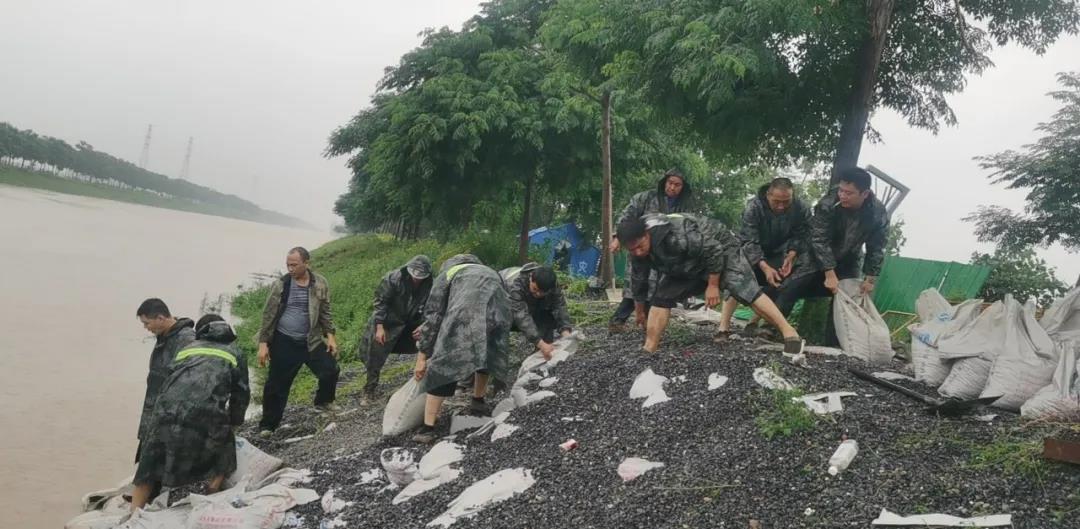 公司防汛工作領(lǐng)導(dǎo)小組、突擊隊員快速投入到搶險第一線,面對洪水義無反顧、冒雨而沖扛沙袋掄鐵鍬。