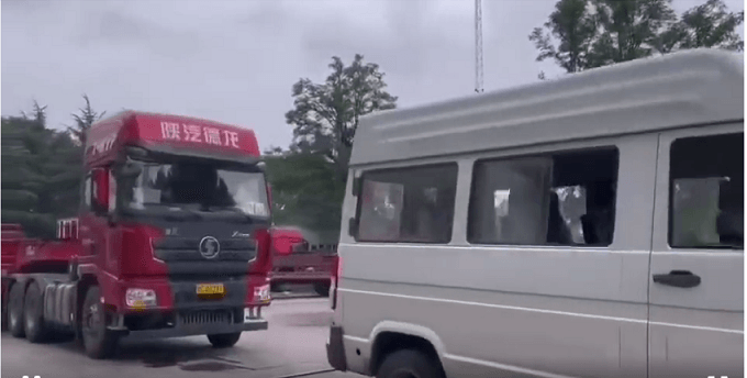 物資車隊面對途中瓢潑大雨,大部分道路阻斷,多處山體塌方及路面。50cm以上的積水,毅然堅定前行。