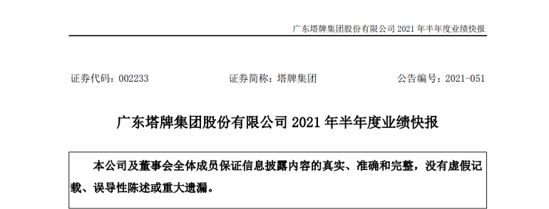 據(jù)塔牌集團(tuán)7月29日發(fā)布上半年財(cái)務(wù)快報(bào),2021年上半年,公司實(shí)現(xiàn)水泥產(chǎn)量1043.52萬(wàn)噸、銷量1009.41萬(wàn)噸,較上年同期分別增長(zhǎng)了41.36%、49.39%;實(shí)現(xiàn)營(yíng)業(yè)收入363356.04萬(wàn)元,較上年同期上升了29.80%;實(shí)現(xiàn)利潤(rùn)總額、歸屬于上市公司股東的凈利潤(rùn)分別為120,587.05萬(wàn)元、91,460.72萬(wàn)元,較上年同期分別小幅下降了1.42%、0.46%。