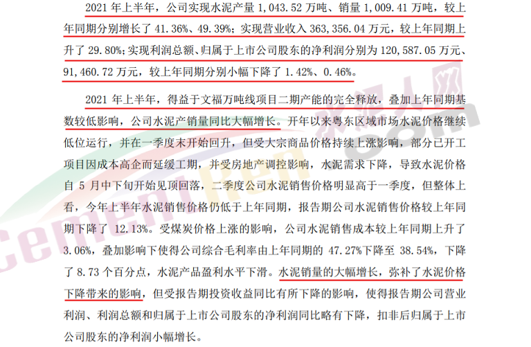 另外公司解釋道,之所以有這個(gè)業(yè)績(jī),得益于文福萬(wàn)噸線項(xiàng)目二期產(chǎn)能的完全釋放,疊加上年同期基數(shù)較低影響,公司水泥產(chǎn)銷量同比大幅增長(zhǎng)。水泥銷量的大幅增長(zhǎng),彌補(bǔ)了水泥價(jià)格下降帶來(lái)的影響,但受報(bào)告期投資收益同比有所下降的影響,使得報(bào)告期公司營(yíng)業(yè)利潤(rùn)、利潤(rùn)總額和歸屬于上市公司股東的凈利潤(rùn)同比略有下降,而其他指標(biāo)產(chǎn)量、營(yíng)收表現(xiàn)優(yōu)異。