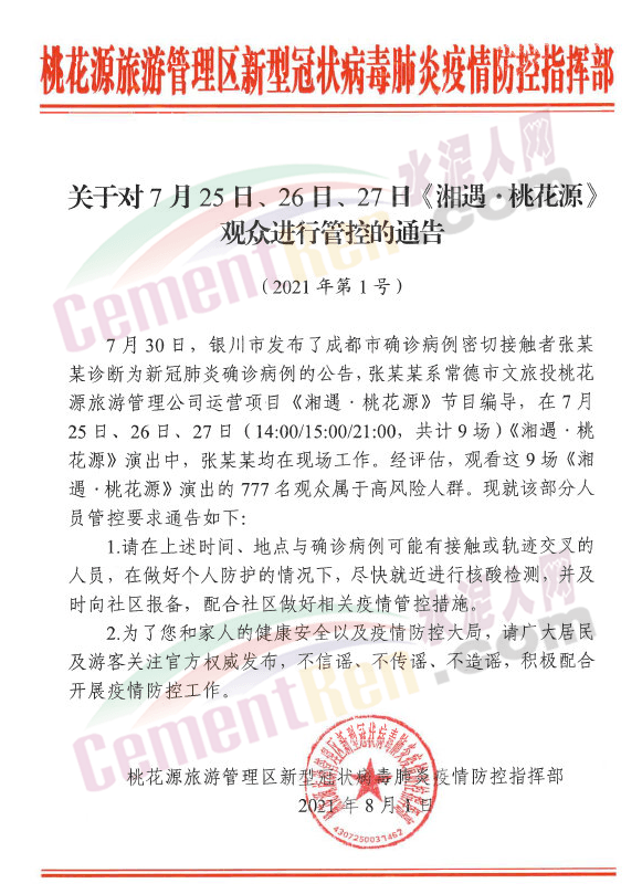同日,湖南常德市桃花源旅游管理區(qū)新型冠狀病毒肺炎疫情防控指揮部發(fā)布消息稱,在7月25日、26日、27日觀看9場《湘遇·桃花源》演出的777名觀眾屬于高風(fēng)險人群。