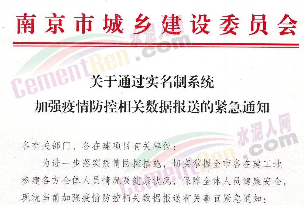 江蘇南京市城鄉(xiāng)建設(shè)委員會發(fā)布《關(guān)于通過實名制系統(tǒng)加強疫情防控相關(guān)數(shù)據(jù)報送的緊急通知。