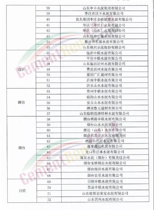 實施對象為山東省水泥熟料企業(yè)的熟料生產(chǎn)線,含特種熟料生產(chǎn)線和建通窯、不含山東魯北化工股份有限公司和山東匯泰再生資源有限公司的化工配套熟料生產(chǎn)線,名單共列出72家企業(yè)。