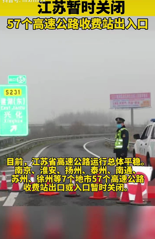 據(jù)江蘇省交通運(yùn)輸廳官方微博@江蘇交通消息,目前,全省高速公路運(yùn)行總體平穩(wěn)。南京、淮安、揚(yáng)州、泰州、南通、蘇州、徐州等7個(gè)地市57個(gè)高速公路收費(fèi)站出口或入口暫時(shí)關(guān)閉。