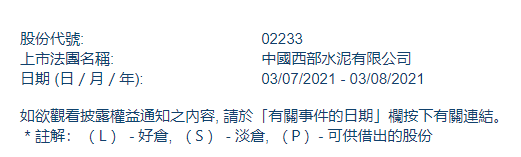 根據(jù)聯(lián)交所最新權(quán)益披露資料顯示,2021年7月28日,西部水泥獲海螺水泥或其一致行動人在場內(nèi)以每股均價(jià)1.1538港元增持306.2萬股,涉資約353.29萬港元。