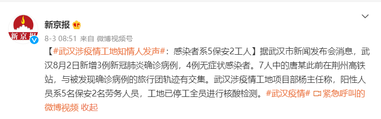 8月4日下午,重慶市奉節(jié)縣也報(bào)告了1例本地新冠肺炎無癥狀感染者與武漢沌口上述工地相關(guān)。