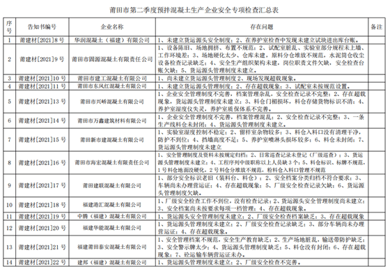 莆田公布預接拌混凝土專項檢查14家企業(yè)被通報