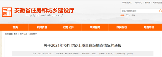 安徽省住房和城鄉(xiāng)建設廳發(fā)布《關于2021年預拌混凝土質量省級抽查情況的通報》