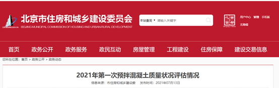 北京市住房和城鄉(xiāng)建設委員會發(fā)布《2021年第一次預拌混凝土質量狀態(tài)評估情況》