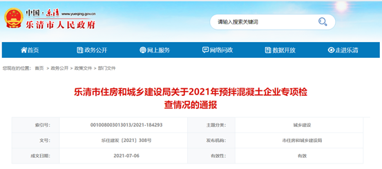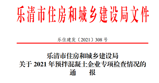 樂清通報2021年預拌混凝土企業(yè)專項檢查情況