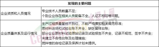 本次檢查中企業(yè)質量保證體系運營情況及人員配備比較差的單位給予通報批評:1、溫州銀龍建筑材料銷售有限公司;2、樂清市州際混凝土有限公司。