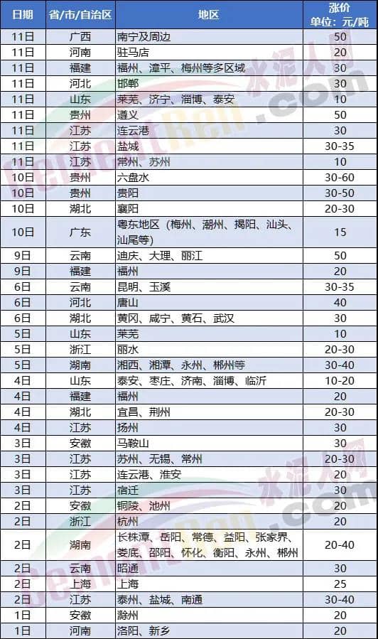 大漲80元/噸,多省市輪番上漲
