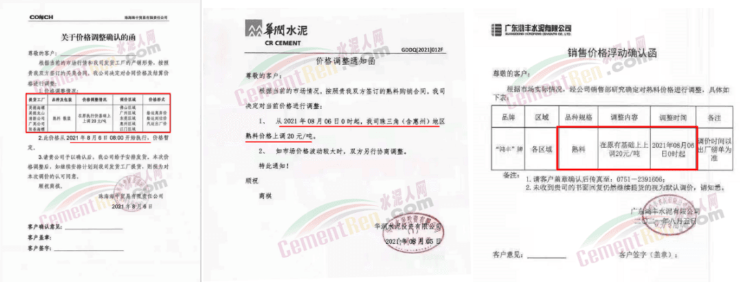 8月6日珠海海中貿易有限公司、華潤水泥、廣東鴻豐水泥通知上調熟料價格20元/噸。