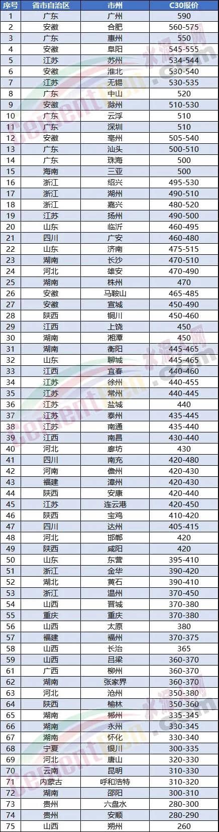 從近期各區(qū)域混凝土報價來看,并未出現(xiàn)大幅波動,相關(guān)行業(yè)人士表示,近期水泥市場大幅漲價正逐步落實中,對商品混凝土市場的影響暫時未體現(xiàn)出來。