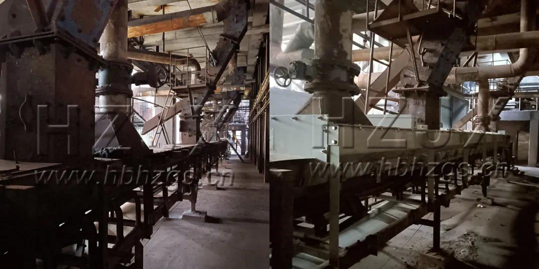 上峰水泥子公司導(dǎo)料槽改造前(左)后(右)對比