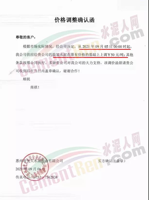 惠州固力水泥集團(tuán)有限公司博羅分公司通知由于受當(dāng)前煤炭等原燃材料價(jià)格上漲因素的影響,公司根據(jù)目前廣東區(qū)域水泥的市場(chǎng)行情,經(jīng)研究決定從2021年9月6日上午8時(shí)起,“固力牌”M32.5、PP32.5R、PO42.5R,全品種袋裝水泥在原價(jià)格基礎(chǔ)上每噸上調(diào)50元。