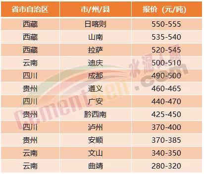 西南地區(qū)云、貴、川、西藏多區(qū)域水泥價(jià)格直漲50元/噸