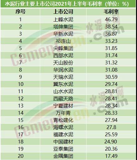 毛利率近50%,上峰水泥遠(yuǎn)超海螺水泥