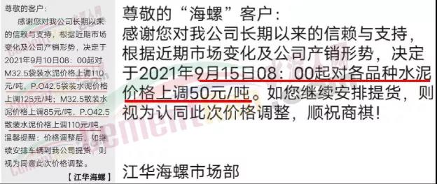 湖南江華海螺通知,9月10日起對(duì)P.O42.5袋裝水泥價(jià)格上調(diào)125元/噸;P.O42.5散裝水泥價(jià)格上調(diào)110元/噸。9月15日再次通知,各品種水泥上調(diào)50元/噸。5日兩次上調(diào),P.O42.5散裝水泥累計(jì)漲價(jià)150元/噸。