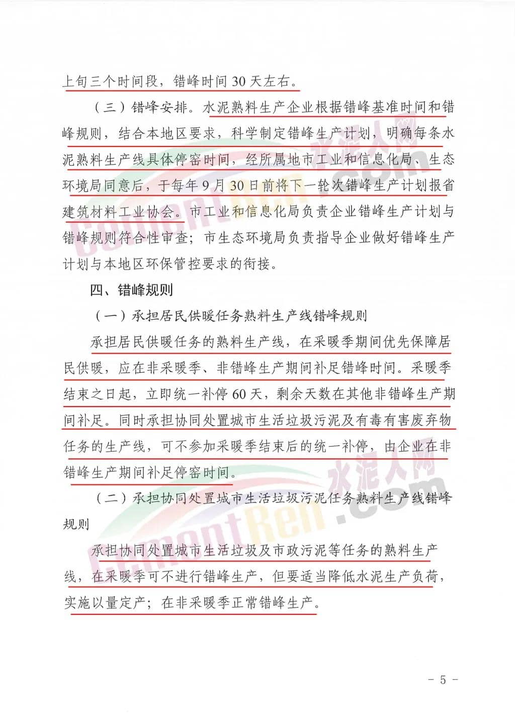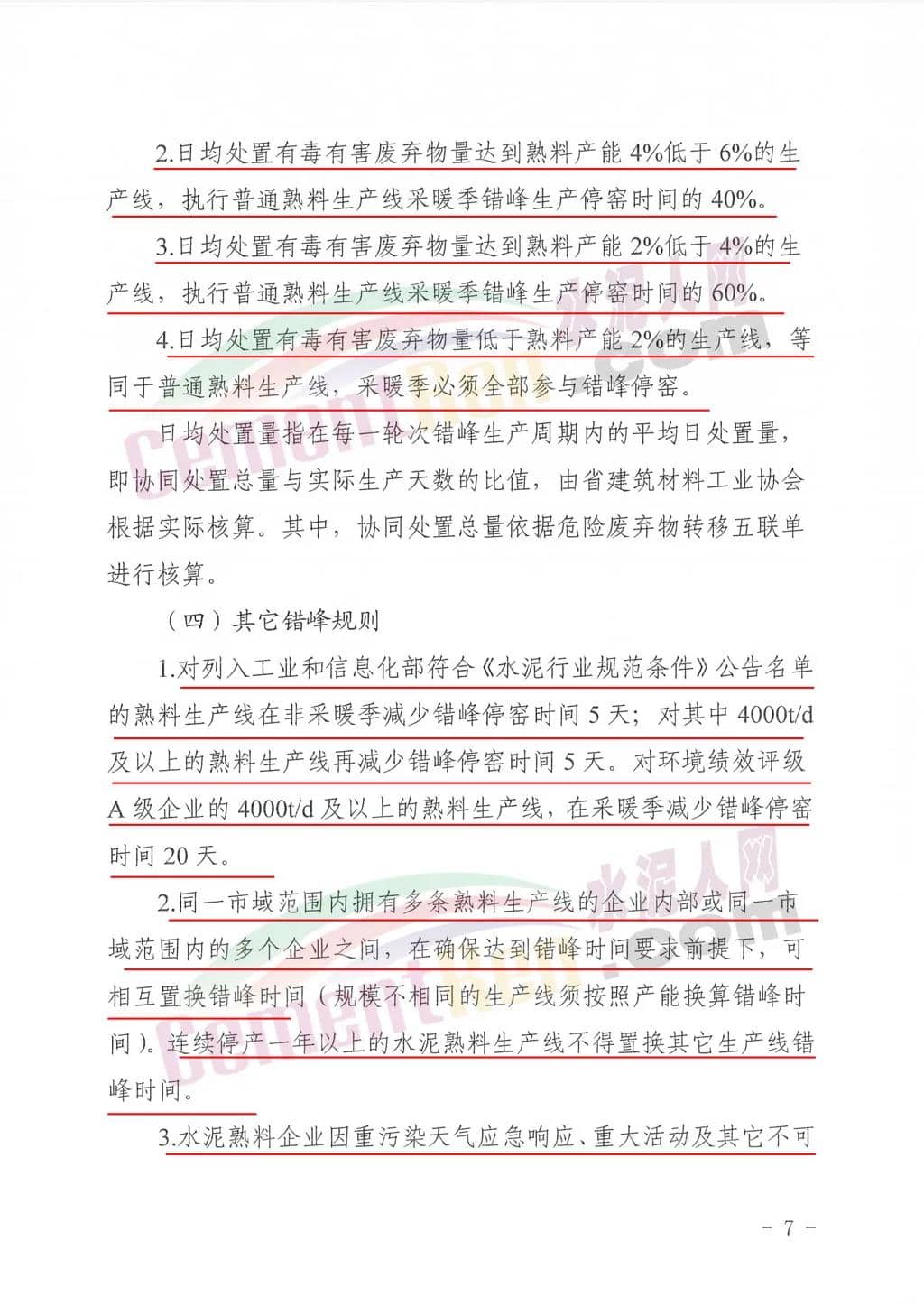 承擔(dān)協(xié)同處置有毒有害廢棄物任務(wù)熟料生產(chǎn)線錯峰規(guī)則承擔(dān)協(xié)同處置有毒有害廢棄物任務(wù)的熟料生產(chǎn)線,在采暖季可不進行錯峰生產(chǎn),但要適當降低水泥生產(chǎn)負荷,實施以量定產(chǎn);在非采暖季正常錯峰生產(chǎn)。