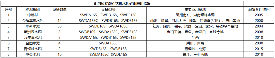 為積極應(yīng)對(duì)市場(chǎng)變化,多家水泥企業(yè)主動(dòng)轉(zhuǎn)變發(fā)展方式,其中,中建材、金隅冀東、華新、葛洲壩等水泥集團(tuán)從鉆孔爆破、礦山開(kāi)采等方面著手,選用國(guó)內(nèi)鑿巖鉆機(jī)“領(lǐng)跑者”——山河智能裝備股份有限公司(以下簡(jiǎn)稱“山河智能”)的鑿巖設(shè)備,在環(huán)保、智能、提效等方面均取得了有力的突破。