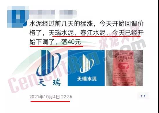 10月4日天瑞水泥、春江水泥等通知下調(diào)水泥價格40元/噸。
