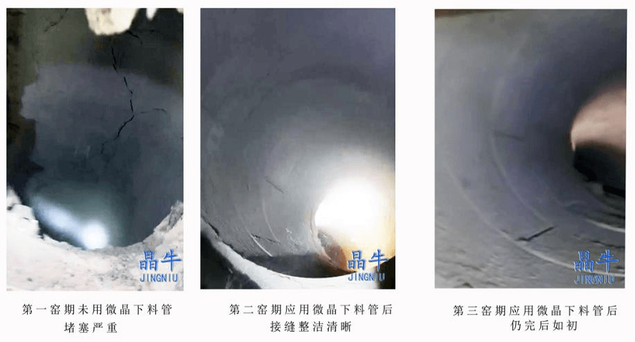 初期應用后,福建該水泥企業(yè)對晶牛微晶微晶材料有了充分的認識,并將其預熱器系統(tǒng)的下料管、煙室、縮口、分解爐等關(guān)鍵部位全部改用為晶牛微晶微晶裝備,今年3月投產(chǎn)后顯現(xiàn)了如下優(yōu)勢: