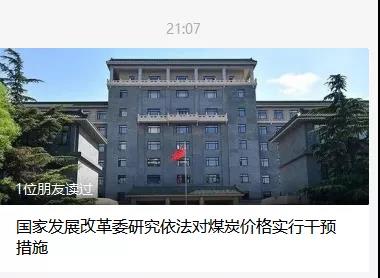 19日21:07分,《國(guó)家發(fā)展改革委研究依法對(duì)煤炭?jī)r(jià)格實(shí)行干預(yù)措施》提到發(fā)改委將研究依法對(duì)煤炭?jī)r(jià)格實(shí)行干預(yù)措施,促進(jìn)煤炭?jī)r(jià)格回歸合理區(qū)間。