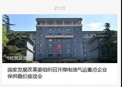 21:10分《國(guó)家發(fā)展改革委組織召開(kāi)煤電油氣運(yùn)重點(diǎn)企業(yè)保供穩(wěn)價(jià)座談會(huì)》,提到發(fā)改委將推出八大舉措促進(jìn)煤電油氣運(yùn)重點(diǎn)企業(yè)保供穩(wěn)價(jià)。