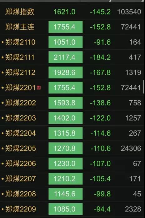 據(jù)統(tǒng)計(jì),截至23:00,共有39個(gè)合約跌停。動(dòng)力煤更是全合約(12個(gè))封死跌停板!