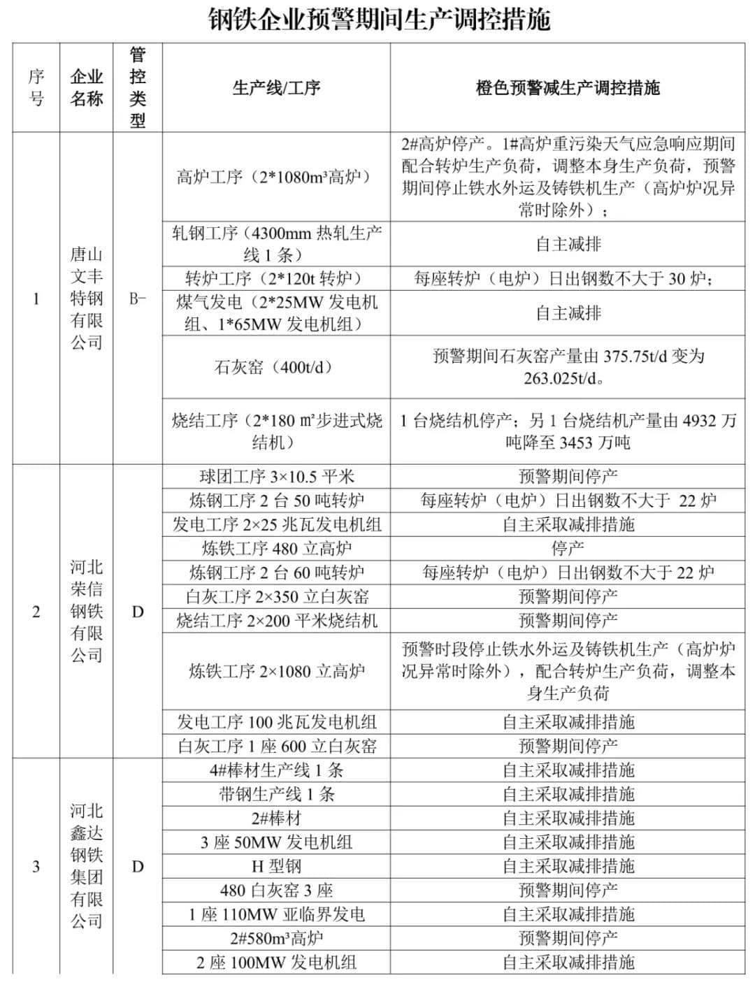 10、獨立軋鋼(含冷軋):實施生產(chǎn)調(diào)控。