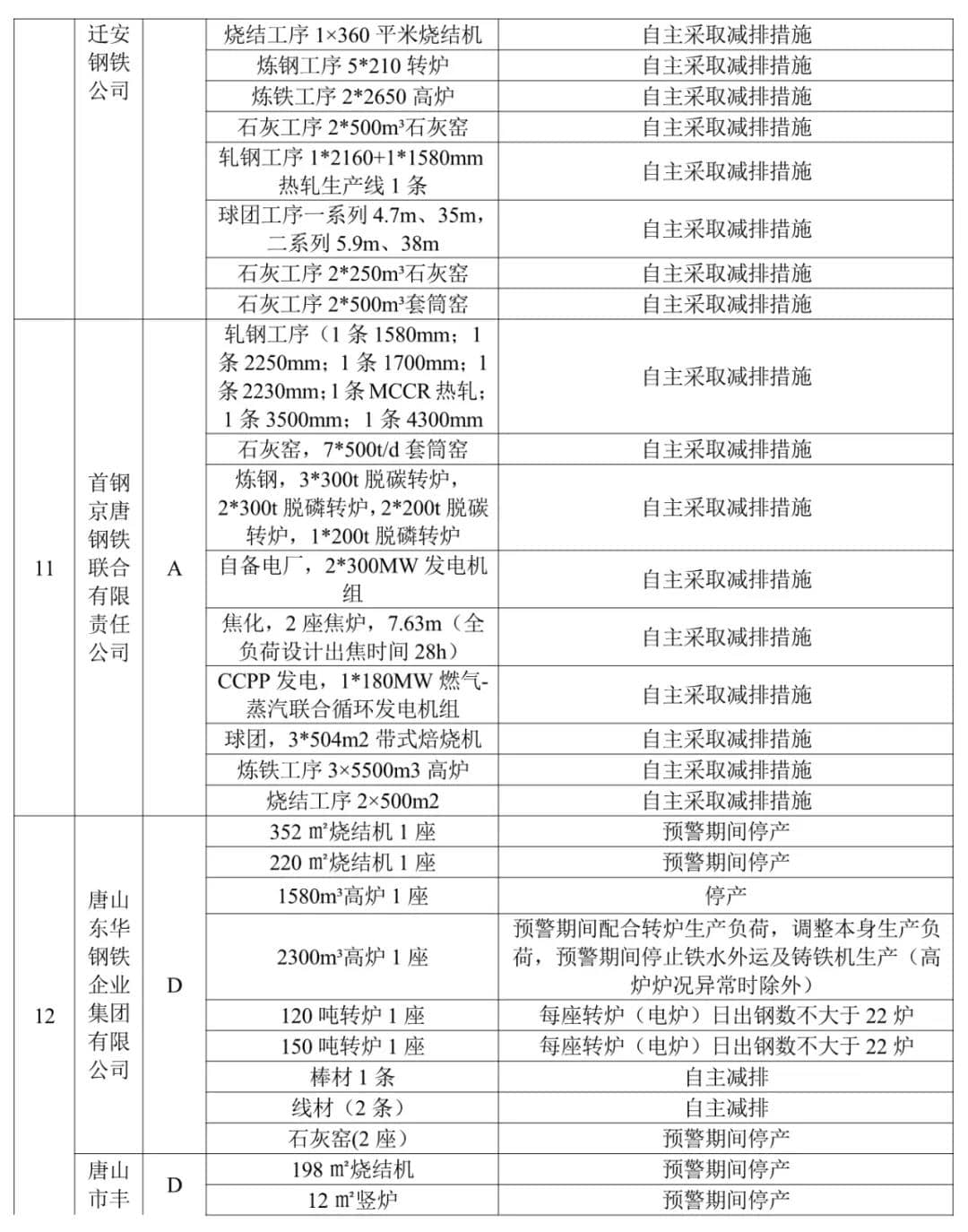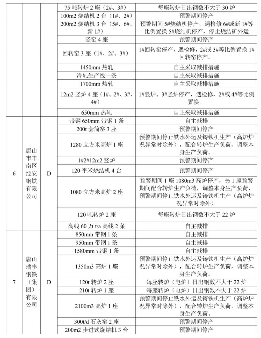 2、水泥熟料企業(yè)企業(yè)。冀東唐山分公司、泓泰水泥2家A級企業(yè)自主減排;飛龍水泥、燕東水泥實施生產(chǎn)調(diào)控。