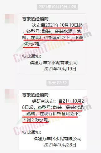 福建萬年銘水泥有限公司繼19日發(fā)通知下調(diào)各標(biāo)號(hào)水泥及熟料價(jià)格30元/噸后,于28日再次通知,下調(diào)各型號(hào)散裝、袋裝、熟料在現(xiàn)行價(jià)格基礎(chǔ)上再次下調(diào)20元/噸,10天內(nèi)累計(jì)下調(diào)50元/噸。