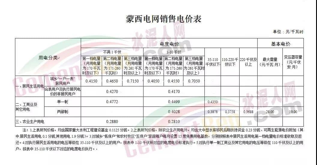 內(nèi)蒙古發(fā)改委提出《關(guān)于明確蒙西地區(qū)電力市場(chǎng)交易用戶保底電價(jià)的通知》中的保底電價(jià)比原有電價(jià)上浮了80%。蒙西的新保底電價(jià)如下表所示: