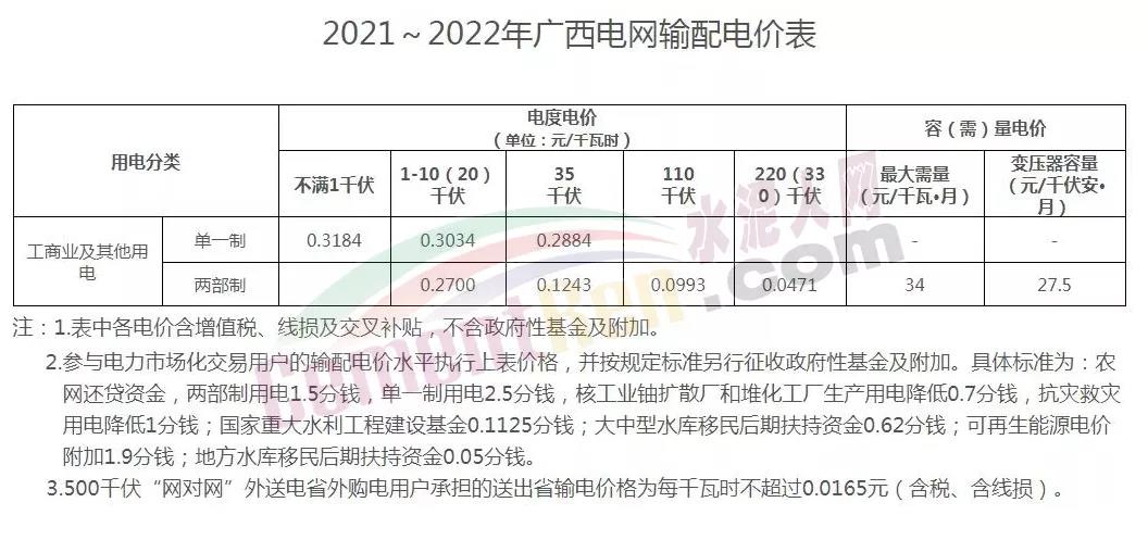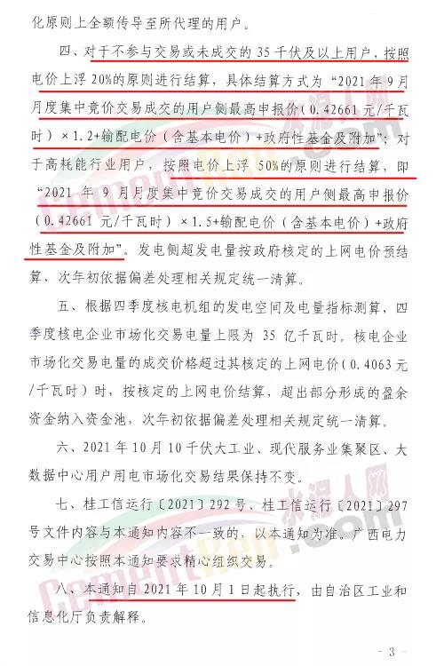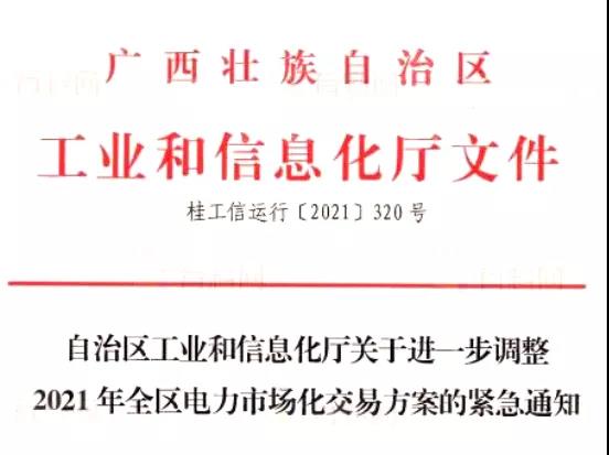 廣西發(fā)布《自治區(qū)工業(yè)和信息化廳關(guān)于進(jìn)一步調(diào)整2021年全區(qū)電力市場(chǎng)化交易方案的緊急通知》,在緊急通知中,高耗能企業(yè)電價(jià)直接上浮50%進(jìn)行結(jié)算。工商業(yè)及其他用電,執(zhí)行《2021-2022廣西電網(wǎng)輸配電價(jià)表》。
