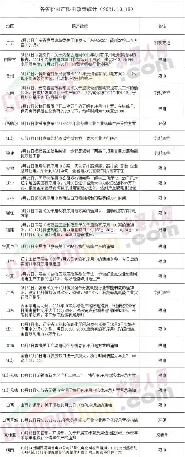 11月3日,安徽省發(fā)布《“兩高”重點(diǎn)企業(yè)2021年內(nèi)用能(電)管控計(jì)劃》要求相關(guān)主管部門做好超計(jì)劃用能(電)企業(yè)限電工作。文件附件各市“兩高”重點(diǎn)企業(yè)名單中包括海螺水泥、南方水泥、中材水泥、天瑞水泥、上峰水泥、磊達(dá)水泥等近百家水泥及混凝土生產(chǎn)企業(yè)。存量“兩高”問題項(xiàng)目梳理排查表中包含海螺水泥、南方水泥、鐵鵬水泥、眾城水泥等多個(gè)項(xiàng)目。