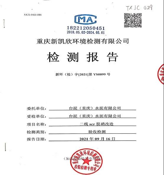 經(jīng)過前期的技術(shù)改造,10月11日,重慶臺泥高溫高塵SCR脫硝竣工驗收會議正式召開,重慶臺泥與其合作單位廣東南大環(huán)保有限公司(以下簡稱“南大環(huán)保”)及第三方相關(guān)部門領(lǐng)導(dǎo)共同參加。