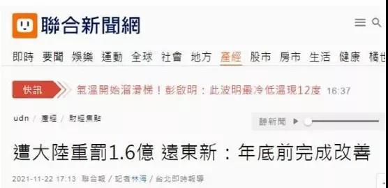 臺(tái)灣遠(yuǎn)東集團(tuán)在大陸投資企業(yè)被罰款,當(dāng)事企業(yè)回應(yīng):將虛心面對(duì),防止類似事情再發(fā)生