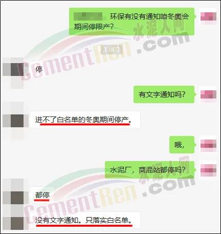 河北張家口某水泥企業(yè)負(fù)責(zé)人表示,進(jìn)不了“白名單”的企業(yè)冬奧期間停產(chǎn),水泥廠和商混站都停。