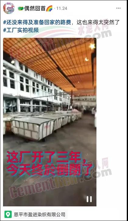 據(jù)了解,不僅水泥行業(yè),近期已經(jīng)有多家工業(yè)企業(yè)停工停產(chǎn),提前放假了,甚至有的企業(yè)宣布倒閉。