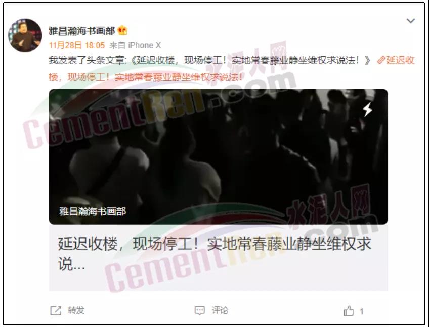 圖:延遲收樓,現(xiàn)場(chǎng)停工,業(yè)主靜坐維權(quán)