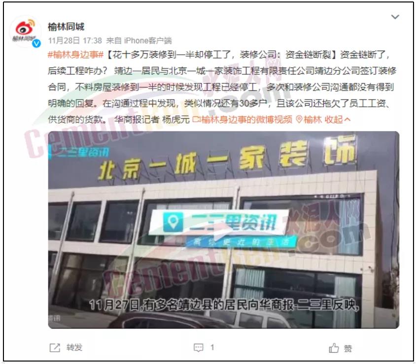 圖:裝修公司資金鏈斷裂,花十多萬(wàn)裝修到一半的工程停工了。