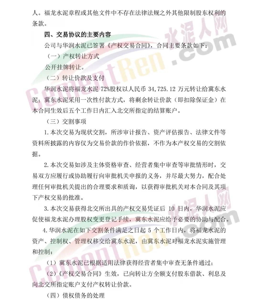 收購!冀東水泥收購華潤水泥子公司!