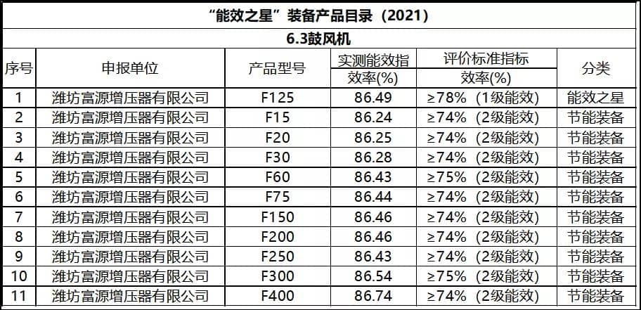 日前,工信部公示了《國家工業(yè)節(jié)能裝備及“能效之星”裝備產(chǎn)品目錄(2021)》,其中,濰坊富源增壓器有限公司(以下簡稱“濰坊富源”)申報的具有自主知識產(chǎn)權(quán)的12款型號空氣懸浮鼓風(fēng)機全部入圍,數(shù)量位居行業(yè)首位。