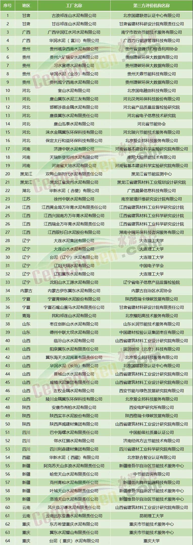 日前,工信部發(fā)布2021年度綠色制造名單,其中綠色工廠包括海螺、天山、中聯(lián)、南方、西南、北方、祁連山、金隅冀東、華潤(rùn)、華新、天瑞、山水、臺(tái)泥、堯柏、聲威、東方希望等64家水泥企業(yè),綠色供應(yīng)鏈管理企業(yè)包括河北鼎星水泥有限公司、廣靈金隅水泥有限公司、陽(yáng)泉冀東水泥有限責(zé)任公司等3家水泥企業(yè)。詳情如下: 綠色工廠名單(水泥企業(yè)) 2021年度綠色供應(yīng)鏈管理企業(yè)名單 (水泥企業(yè))