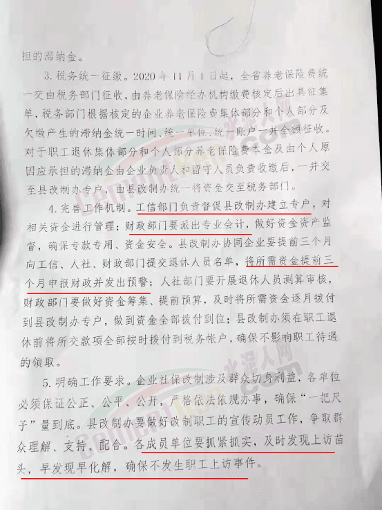 3、離廠后的職工長(zhǎng)達(dá)十五六年無(wú)人繳納養(yǎng)老金,導(dǎo)致產(chǎn)生大量巨額滯納金。2018年開(kāi)始,下崗職工不斷通過(guò)各種渠道表達(dá)訴求,國(guó)家、省市縣各級(jí)部門全部反映過(guò)訴求,總算答應(yīng)免除滯納金。但退休職工仍然需要墊繳滯納金和本金,滯納金遲遲不退還;
