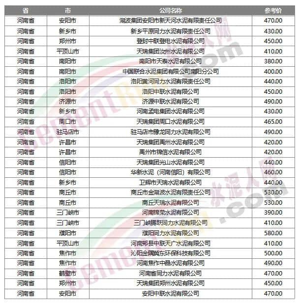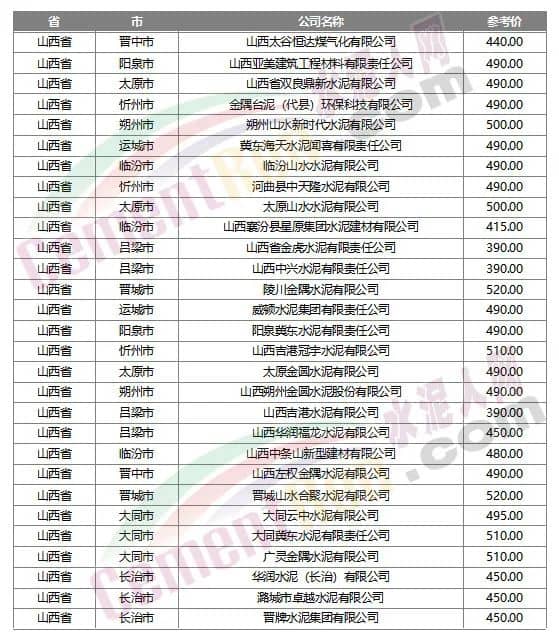數(shù)據(jù)來源:水泥人網(wǎng)信息中心人工采集,僅供參考。如與實際成交不符,請以實際成交為準。