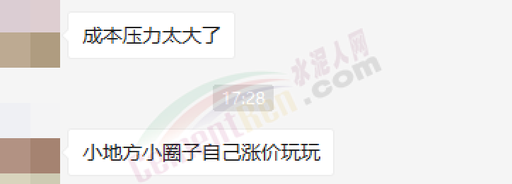 廣東珠三角一經(jīng)銷商對(duì)水泥人網(wǎng)表示,成本壓力太大了,現(xiàn)在珠三角個(gè)別區(qū)域個(gè)別企業(yè)“小地方小圈子自己漲價(jià)玩!”