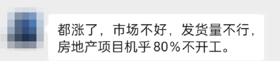 長三角一家中轉(zhuǎn)庫負(fù)責(zé)人對(duì)水泥人網(wǎng)表示,“都漲了,市場不好,發(fā)貨量不行,房地產(chǎn)項(xiàng)目幾乎80%不開工。”