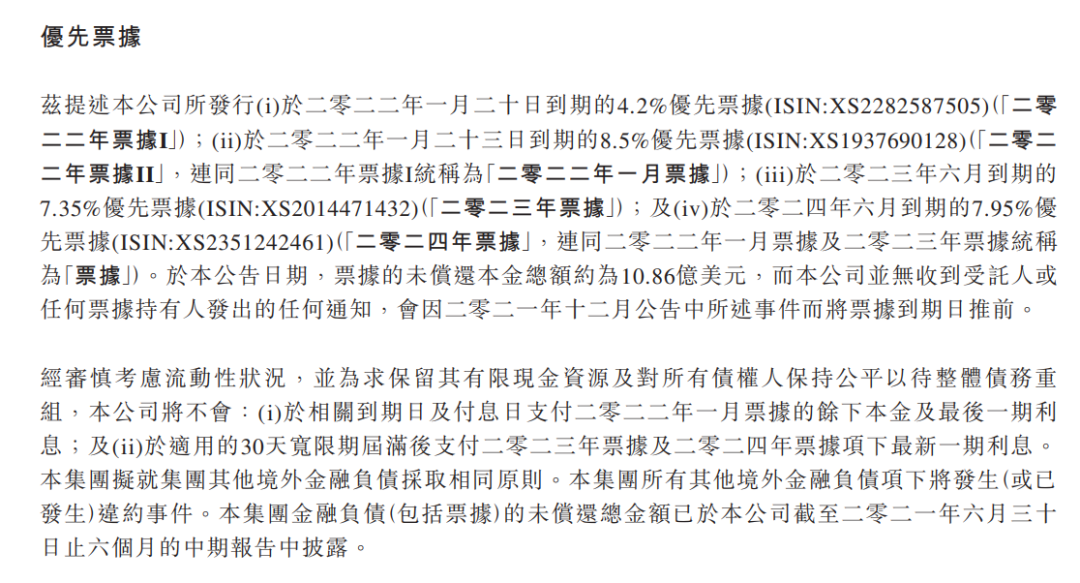 中國奧園宣布,將不會支付即將于2022年1月20日本金總額為1.88億美元及1月23日到期本金總額為5億美元的美元票據(jù)支付余下本金及最后一期利息。截至2022年1月20日,奧園未償美元債務(wù)總額高達(dá)32億美元。